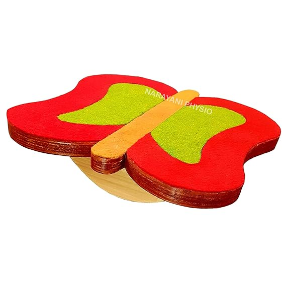 Brightly colored butterfly shaped wooden balance board for your child can be used to balance, wobble or jiggle on it and improve balance and coordination.